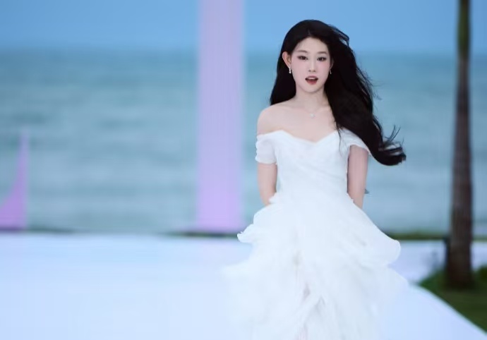 红毯尽头的聚光灯一盏盏亮起来,相机快门声噼里啪啦响成一片。当沈佳润穿着一身浅杏色纱裙出现在入口时,现场先是静了一下,紧接着拍照的声音更密了 —— 这可是这位 18 岁姑娘人生中第一次走正式红毯,可她一点都不显得害羞紧张。